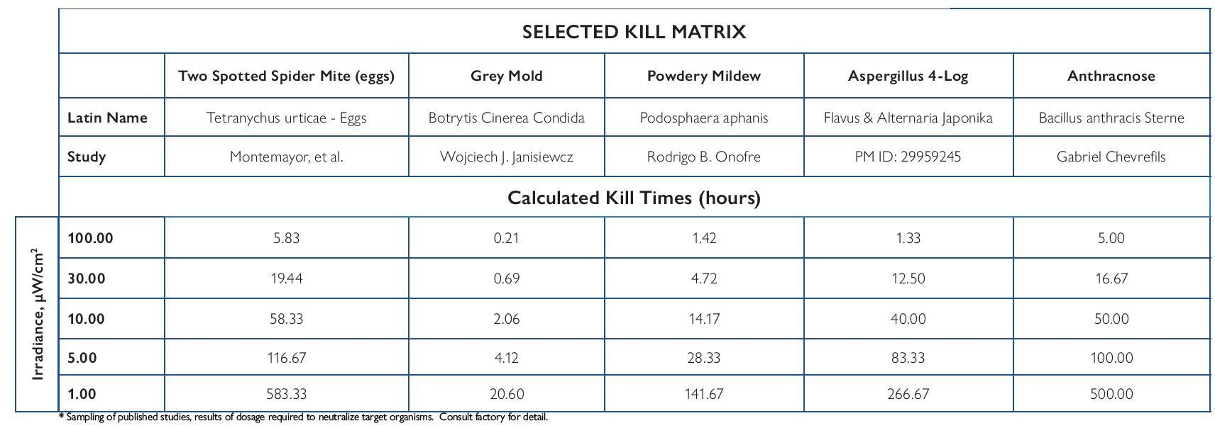 UVC products are considered harmful to humans, plants and animals and other organic materials when exposure exceeds recommended dosage. The user is responsible for taking all measures to reduce exposure or otherwise protect any and all materials that may experience unplanned exposure to the energy from these products.